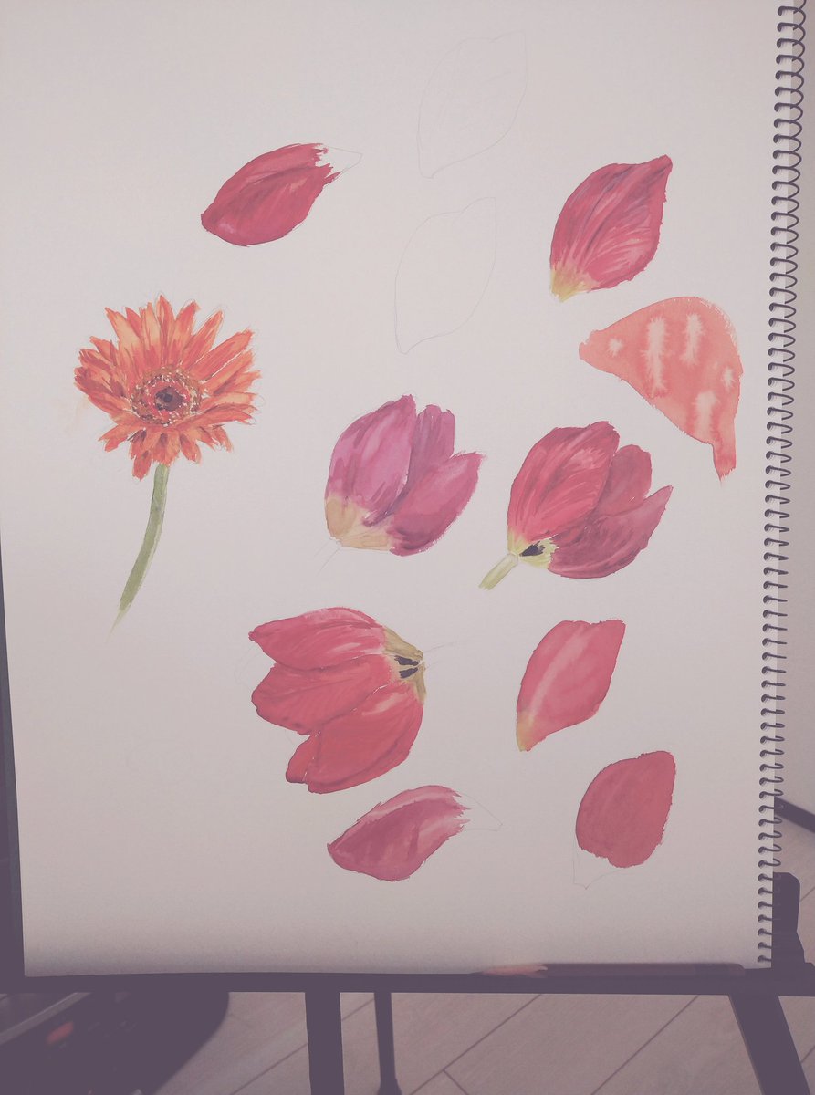 水彩練習ガーベラ、チューリップ #水彩 #初心者