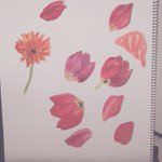 0 5 水彩練習ガーベラ、チューリップ #水彩 #初心者 21/03/14 17:11