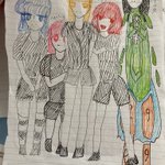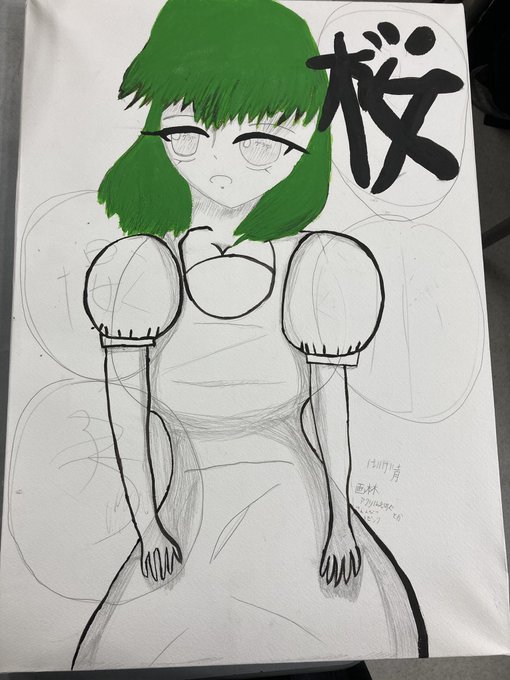 #今年もあと1ヶ月になりましたが画力がどうなったか見てみましょう 1、2枚目 初期スタ桜ちゃん(たしか2〜3年くらい前かな?) 3,4枚目 肖像画スタ桜ボスとスタ桜ちゃとスタ桜ボス(3はつい最近、4は文化祭で出した画集の一部)