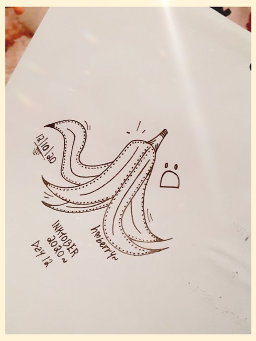 Inktober: Day 12 - Slippery~ 🍌💛 • For this theme, I went with a classic banana peel! 🤣😂 • I'm using the official Inktober prompt list for this year♡ 😊💚 #inktober2020day12slippery #inktober2020day12 #inktober2020