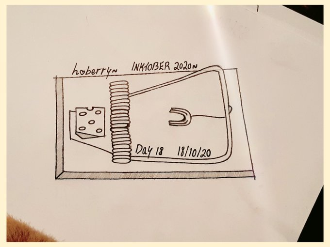 Inktober: Day 18 - Trap! 🧀 • I decided to go with a mouse trap for this one~ 🐭💛 • I'm using the official Inktober prompt list for this year♡ 😊💚 #inktober2020day18trap #inktober2020day18 #inktober2020