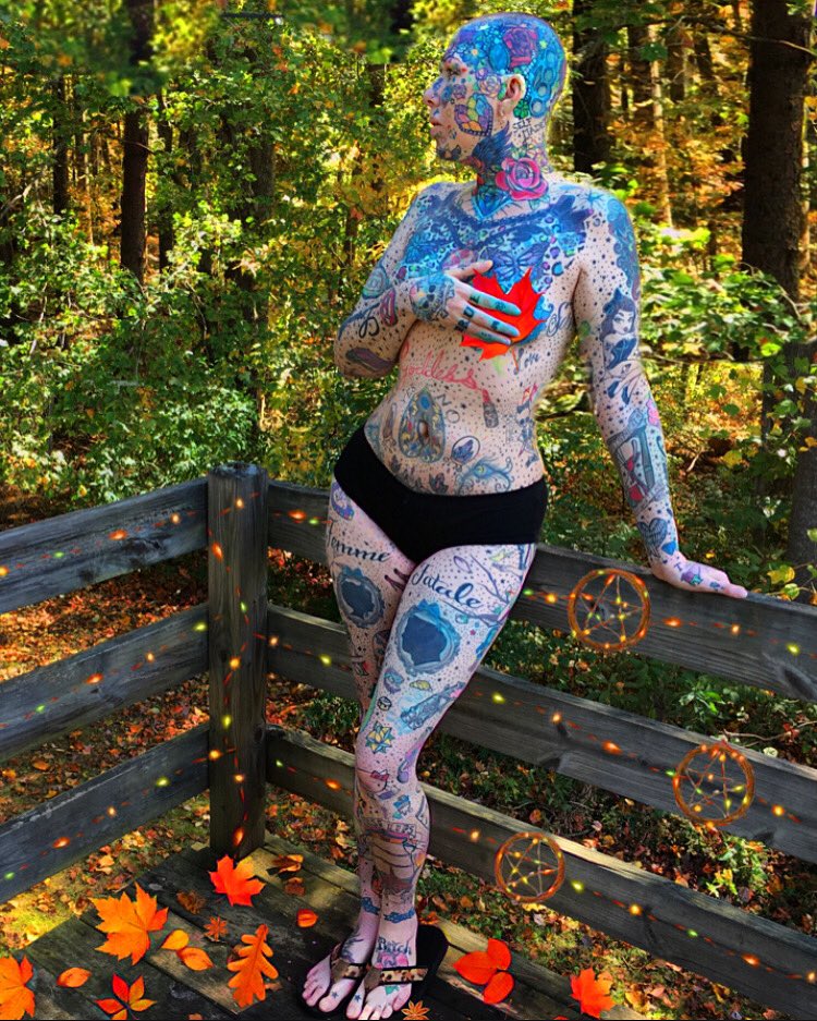 A witch’s natural habitat 🌲🍁✨ #witch #pagan #inktober2020 #inked #inkedgirls #inkedmodels #tattoogirl #tattooed #tattooedgirls #tattooedmodels #bodymod #nature #models #baldgirl