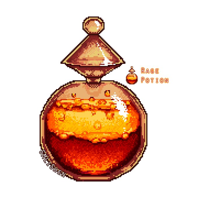 1 4 Rage Potion! Wasn't sure what the separation in the original was so I made it like an oil-water separation, like to boil with rage artstn.co/p/58RKG1 Process video: instagram.com/p/B0o1vjJFFO-/ #terraria #relogic #pixelartist #pixelart #gaming #gameart #2dartist #aseprite #art 19/08/02 07:57