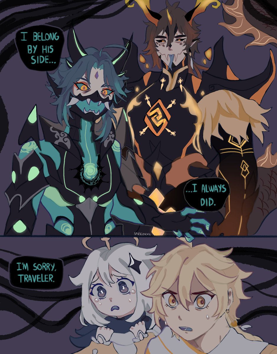#zhongxiaoweek2022 day 5: Loyalty He will follow his Lord no matter what next archon quest looks interesting🧐 ABYSS AU I made with @_daroon (he did the design for abyssLi and I made abyss xiao) #zhongxiao #鍾魈