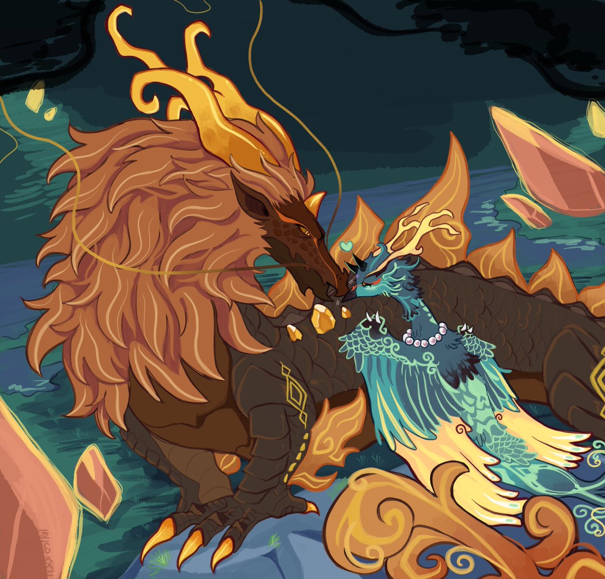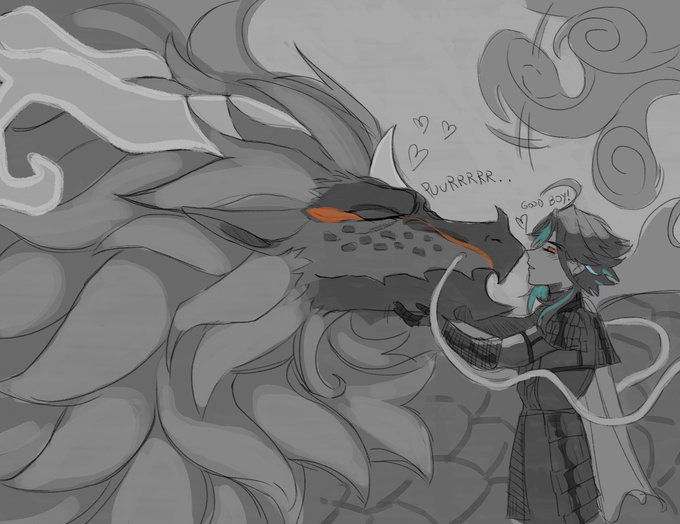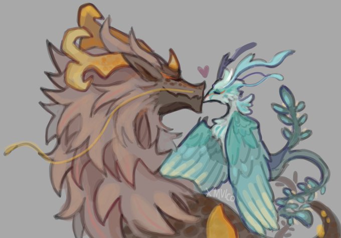 #zhongxiaoweek2022 day 4: original form two beasts in love. it was so much fun working with xiao's true form design! #zhongxiao #鍾魈