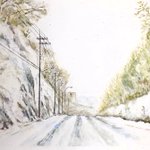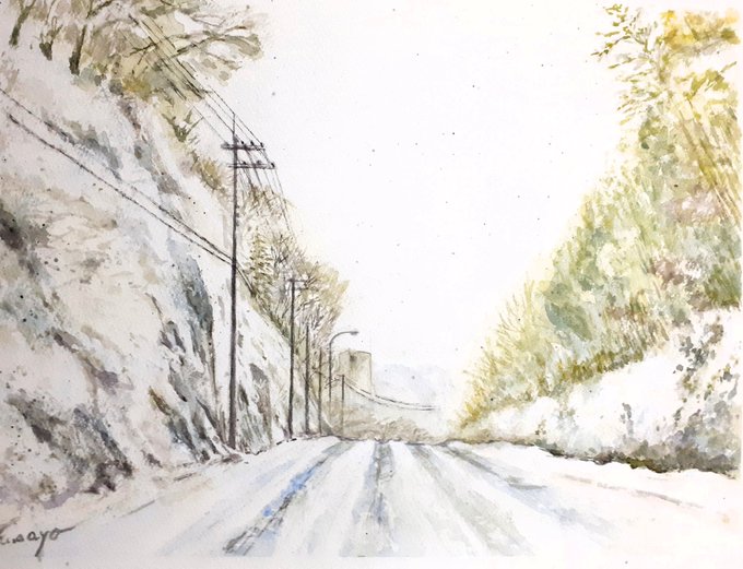 あつーい✨✨✨✨ 夏なのに 雪景色 近所の峠 涼んで下さいね #水彩画 #透明水彩 #峠 #ランブライトF4