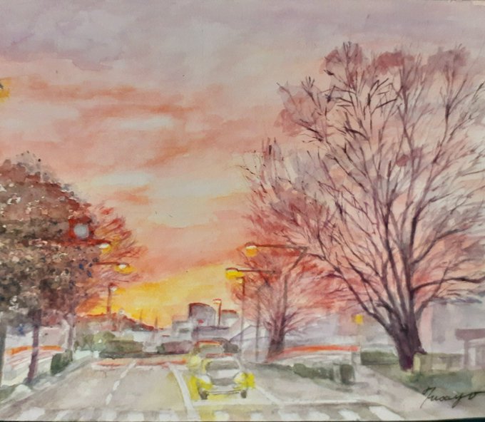 ヘ(`・ω・)ノ\(´O`)/ おはようございます 近所の昨年の桜見を 今年1月に描きました #さくら #水彩画