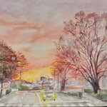 8 143 今晩は🌙😃❗ 今 ガサガサと仕上げました まだ 濡れてるので 色は 濃いめです。🥰遅れ遅れですが 見てください #水彩画 #アナログ #公園 #ランプライトF4 23/05/22 23:39