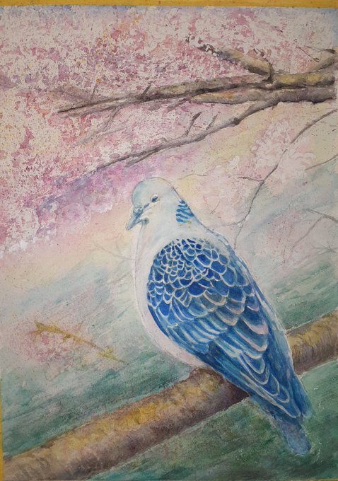 3 87 修正しました。 ペタペタです‼️ #水彩画 #鳩 #ランプライト ランプライトが 悲しんでます。 23/04/18 19:44