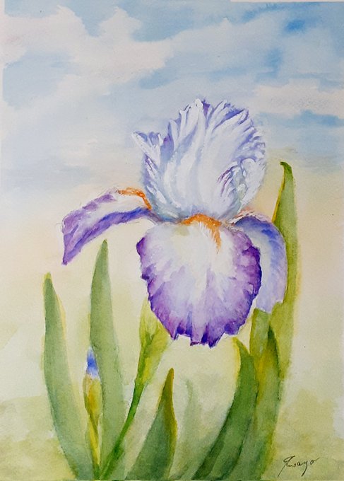 #水彩画 #ランプライト #アナログ #ジャーマンアイリス どっちの書き方が⁉️
