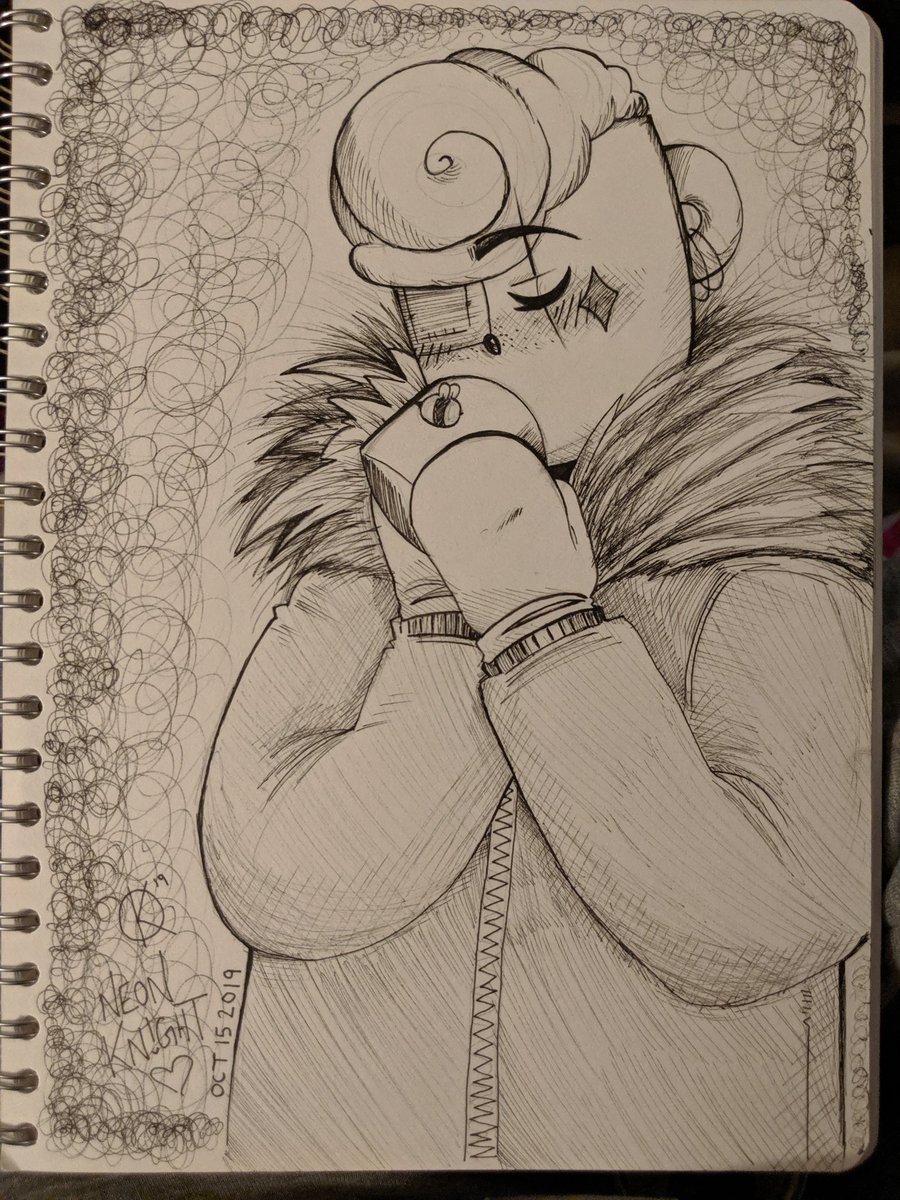 Attempted to ink something traditionally ✨ have some soft Rhomny in the cool weather 💕 ☕🌨️🍁 #fall #ink #inktober #oc #cupheadoc #traditional #myart