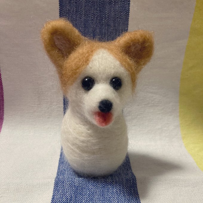 ヒナリさんのこけしが可愛くて使ってみたけど、似ても似つかぬ物になった😂 3作品目🐶 #羊毛フェルト