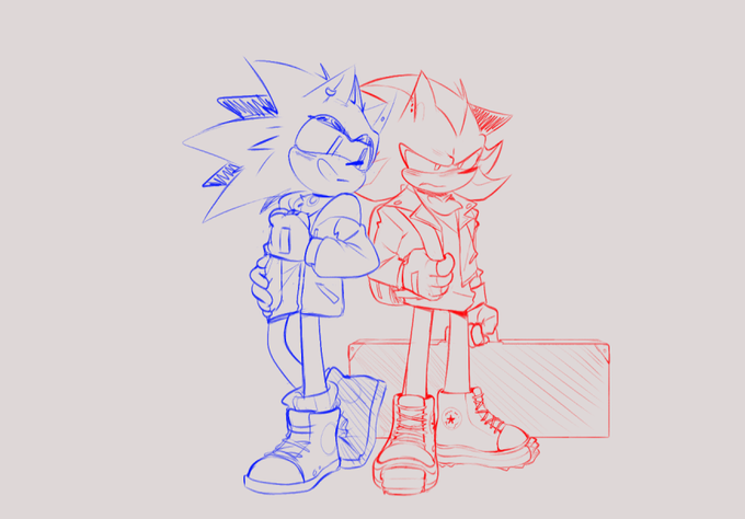 //Rock Band Au// Here is my first drawing of Shadow and Sonic being slightly homosexual What Sonic is saying I leave to the consumer's imagination but I'll give you a hint: Look at the direction of his eyes ;) #SonicTheHedgehog #sonicfanart #ShadowTheHedgehog #sonadow #SonicAu