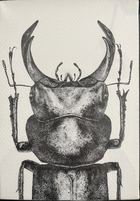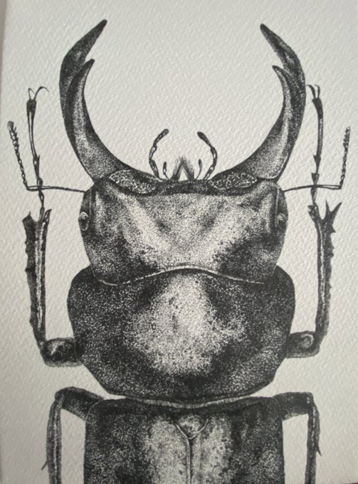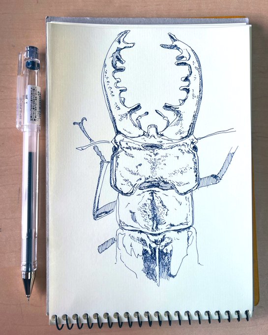 ペンでノコギリクワガタを描きました! 沢山の方に見てもらえると嬉しいです! #いきものフェス