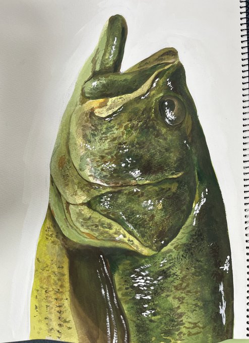 4 99 アクリル絵の具でブラックバスを描きました 23/03/18 15:52