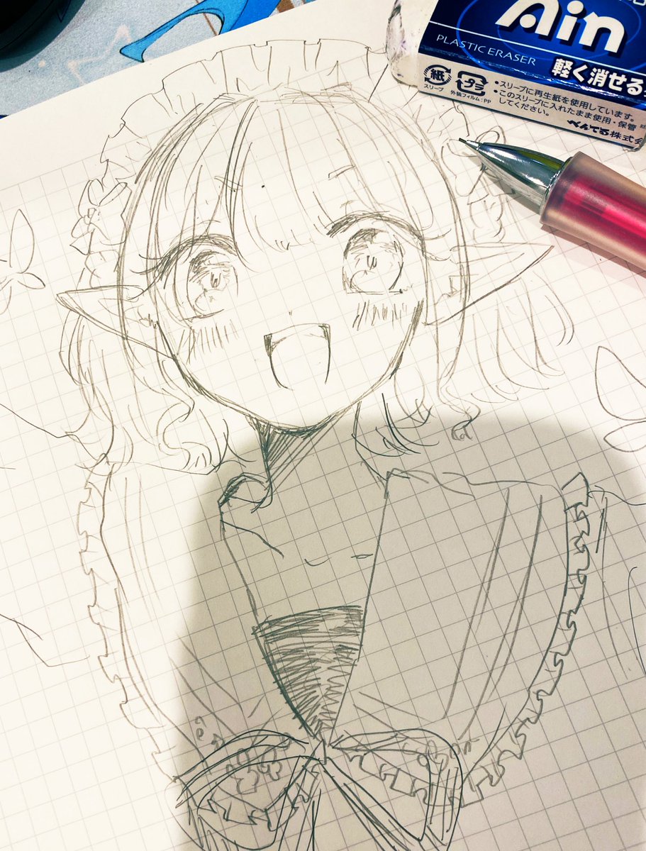 仕事中のらくがき フリルの作画カロリー高いなえるえるは! 可愛いから許してます #えるの絵だよ