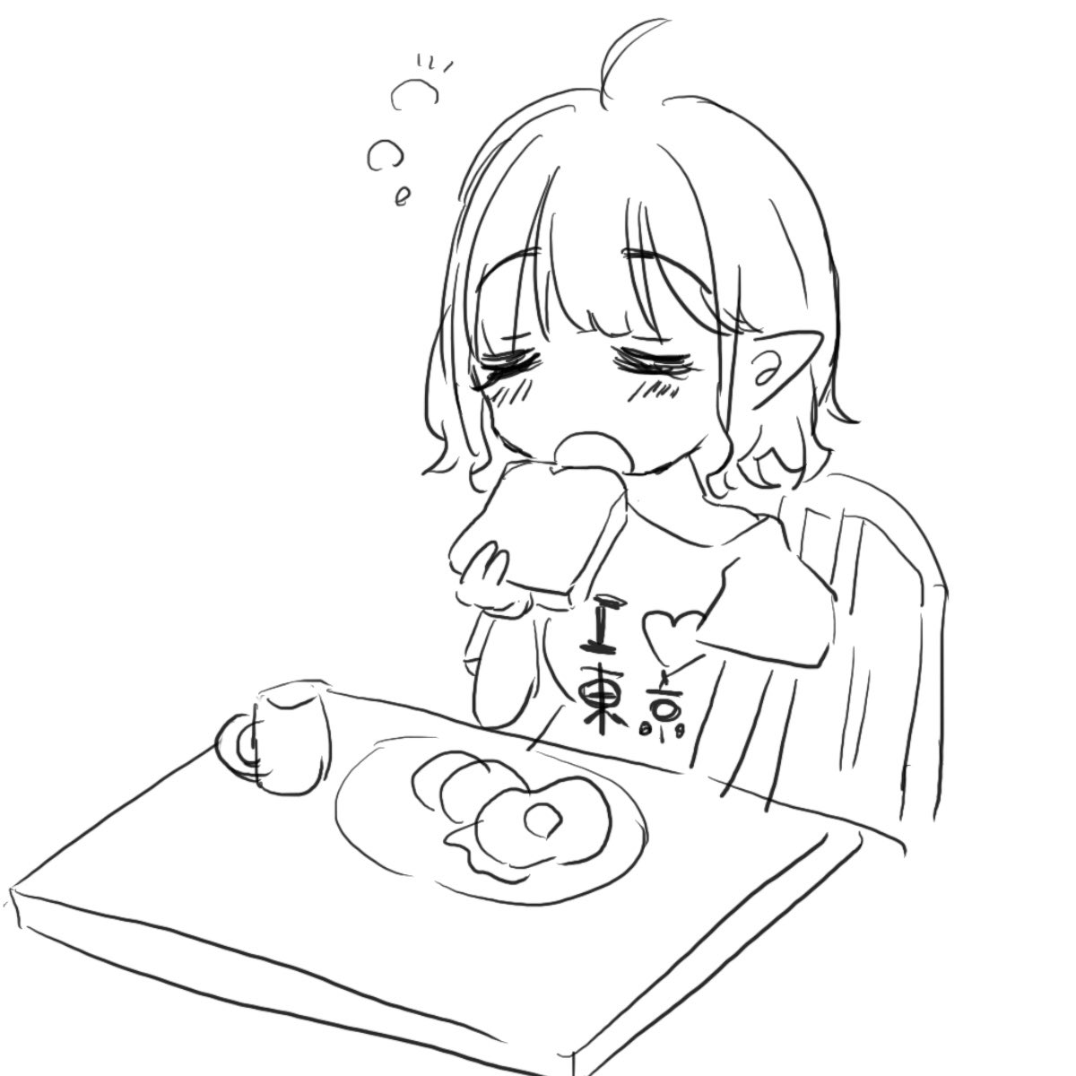 朝ごはん用のパンがあるいい朝のらくがきです #えるの絵だよ