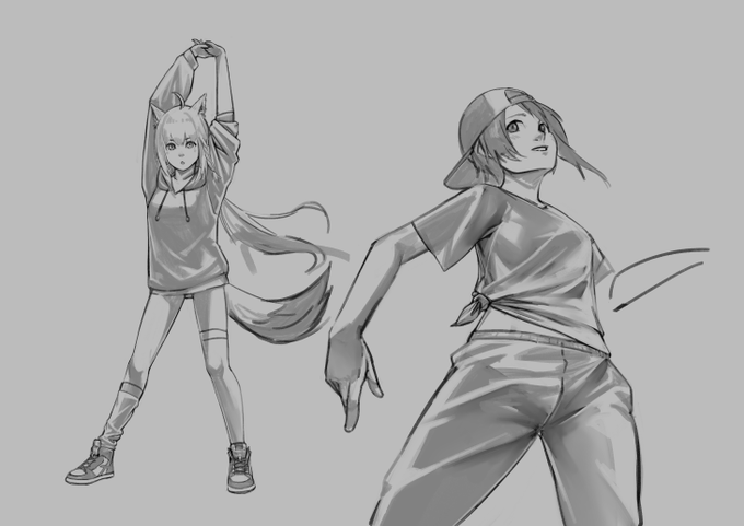 Some quick sketches. Practicing on some dance movement. Ref: Me with a camera😚 #hololive #絵フブキ #プロテインザスバル
