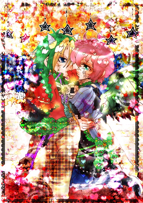 #推し達のクリスマス2022 参加させていただきます!オリキャラさんの推しカップルで(えBL・・・^^; 苦手な方いたらスミマセン><;左の上の浮いてる白い物体は鳥の羽を集めたツリー・・というイメージで描きました(カラーが下手すぎて伝わらないかも・・・!<ファンタジックなクリスマスで!