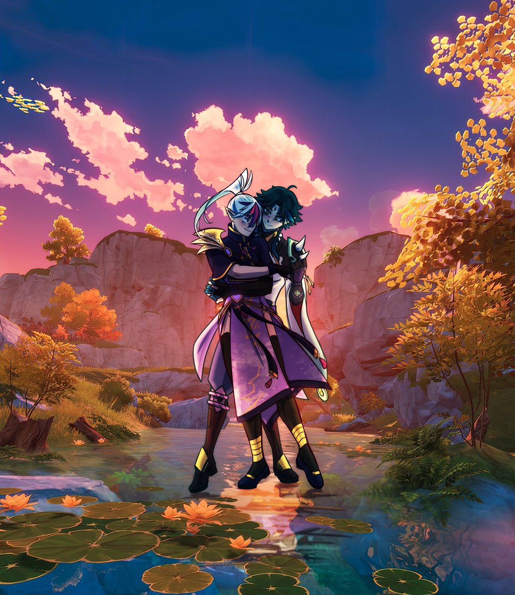I dug up some of my older ish ship art I have of my Genshin OC and Xiao because of this event ;w; #GenshinImpact #genshinoc #genshinimpactfanart #xiao