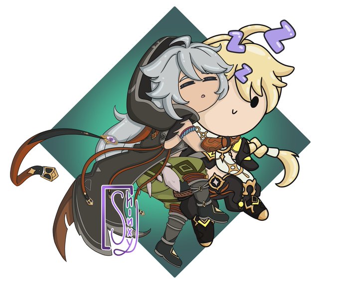 When it was Razor's bday his letter saying he missed the traveler made me want to give him a big hug, also the biggest Aether plushie so he won't miss him that much and can cuddle with it TwT #GenshinImpact #razor #Aether #genshinimpactfanart #miHoYo