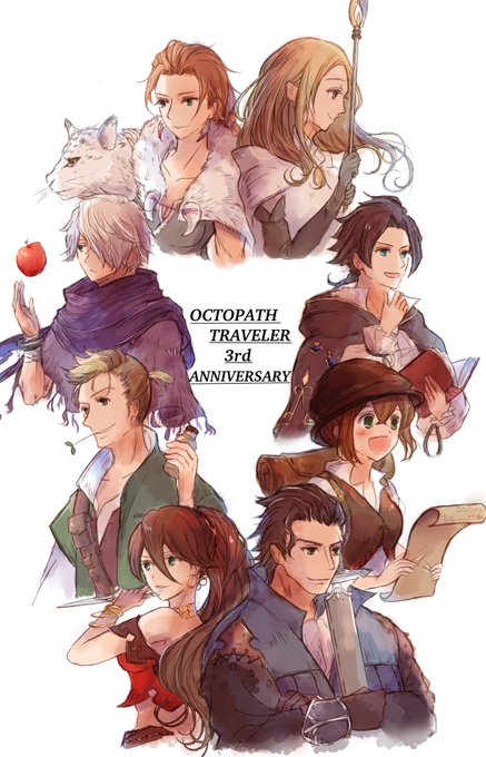 オクトラ3周年おめでとうございます! 8人の旅路も音楽も世界観も全部全部大好きです!学者猫のお手紙いつも楽しみにしてます! #オクトラシリーズ3周年記念ファンアート #Octopath3rdAnniversary