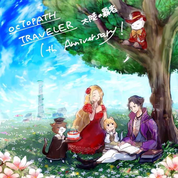 名声編の衝撃的な展開と3章ボスにボコボコにされたのが思い出深いです。大好きなオクトラの世界を毎日旅が出来て嬉しいです。これからも楽しみにしています!学者猫大好きです! 大陸の覇者1周年おめでとうございます!マーヴェラス! #オクトラ周年祭ファンアート