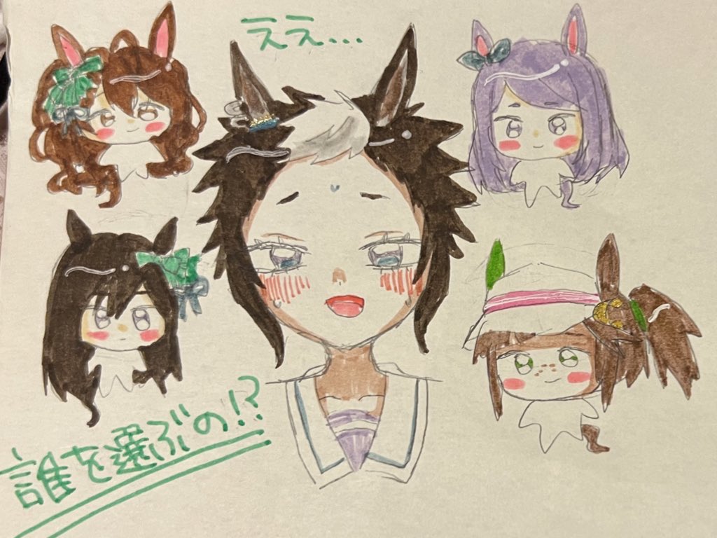 指名頂きました🙏 いつも通りお気に入りをあげようとすると再掲の再掲の再掲の再掲の(以下略)になりそうなのであえてここではお気に入りというよりはアナログのらくがきたちをえらんでみました メジロライアンがすきです #引用RTで絵をあげて5人指名してバトンでお気に入りの絵を載せる twitter.com/foorai_bou/sta…