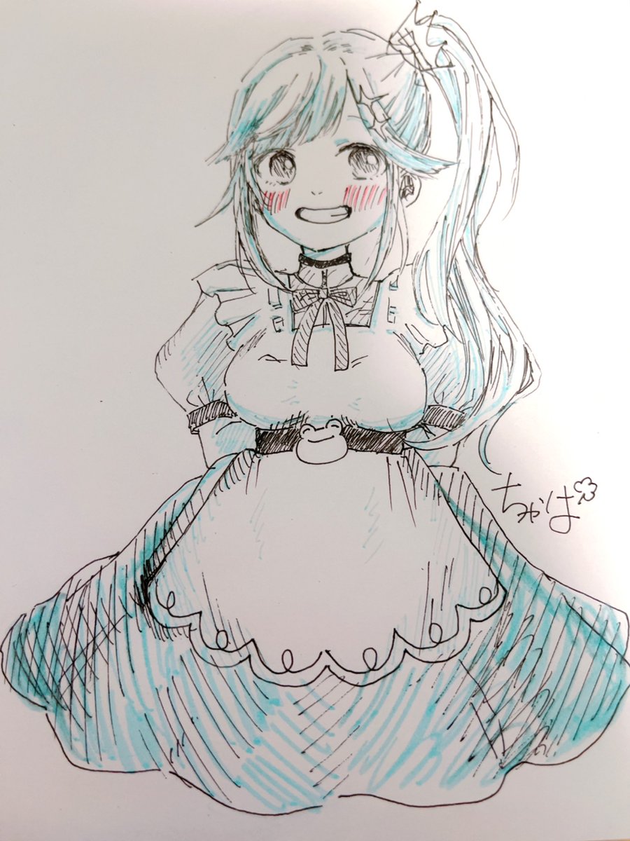 メイドの日何も描けなかったので 彩咲ちゃんに犠牲になってもらいました😌 初めて描くのに公式の衣装じゃなくて申し訳なさと次はもっと可愛く描くぞのきもちです💪(`・ω・´💪) #けろあーと