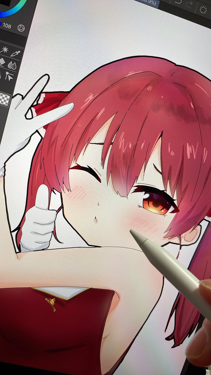 このアカウント作ってもう1ヶ月たった ‼️早すぎ‼️‼️ これからもマリン船長描いていくゾ♥️ #今月描いた絵を晒そう #宝鐘マリン