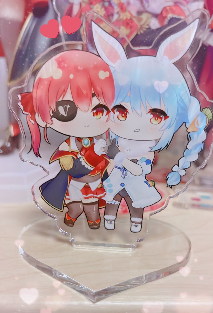 ぺこマリアクスタとマリン船長のアクキー届いたぁ‼️‼️🏴☠️🐰✨️✨️✨️♥️♥️♥️ めちゃくちゃ綺麗に印刷されてて良き‼️ 次のツイートにてプレゼント企画します‼️- ̗̀🎁 ̖́- #マリンのお宝 #ぺこらーと