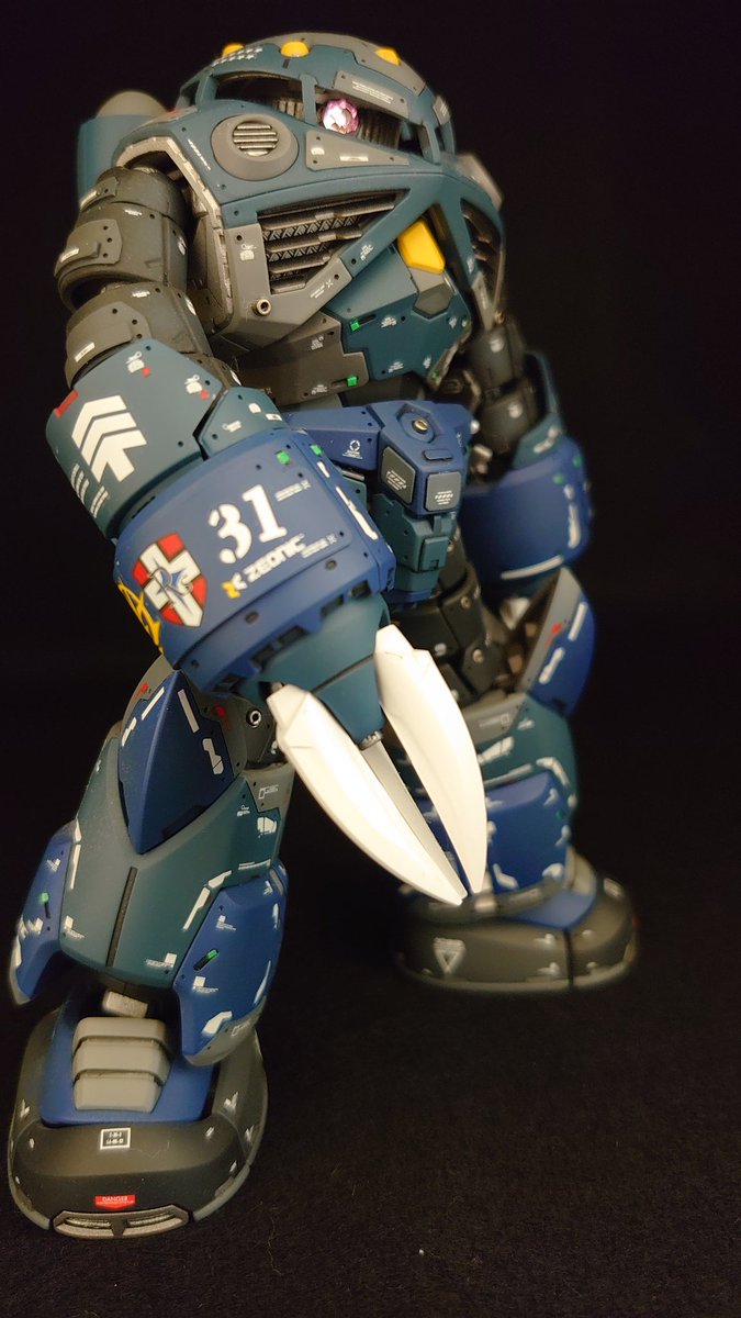 HG オリジン版 高機動型ザクⅡ ガイア機 完成しました😆🎵 オリジン版のキットは良キットなので、多少のスジ彫りと頭部日差しの形状変更、塗装の塗り分け、デカール貼り、ビーズ埋め込みでトップコート仕上げです。 #ガンプラ #ガンプラ好きと繋がりたい #ガンプラの画像貼るとRTされると聞いて