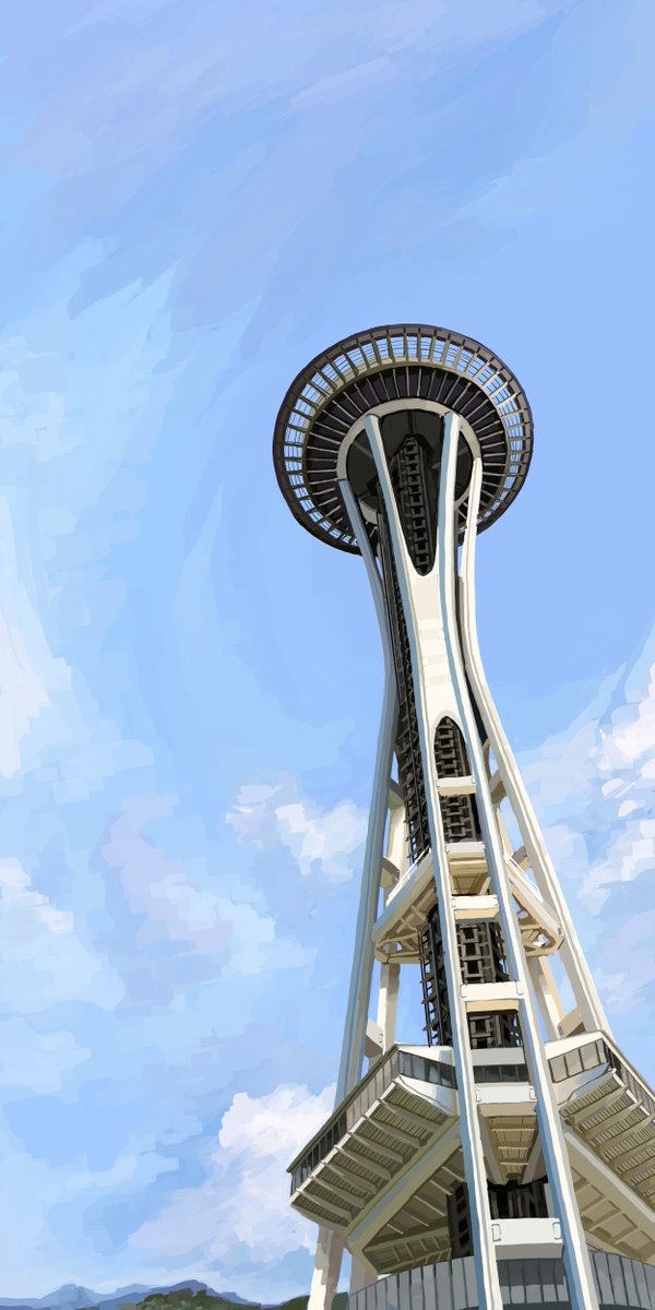 More of my digital paint of real life objects. Space Needle. I used to live in Seattle myself, and it's obviously one of the more interesting aspects of the skyline! #digitalart #digitalpainting #krita #artpractice
