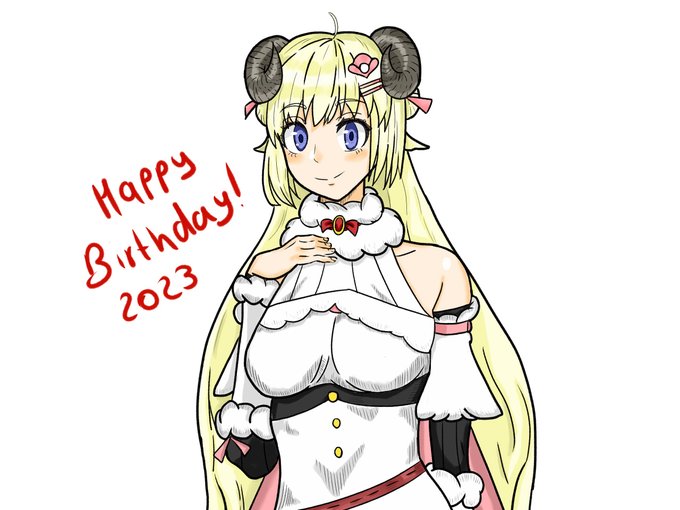 わためぇ!!お誕生日おめでとう! わためのお誕生日を記念して初イラストを描きました! #つのまきあーと #角巻わため生誕祭2023