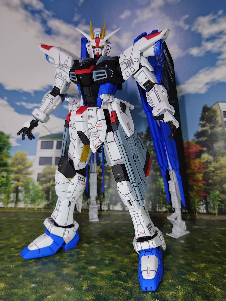 RG 1/144 #ストライクフリーダムガンダム 少しデカール貼ったよ🤣 #ガンプラの画像を貼るとRTされると聞いて #ガンプラ好きな人と繋がりたい #ガンプラは自由だ #ガンプラ初心者 #みんなでガンプラ