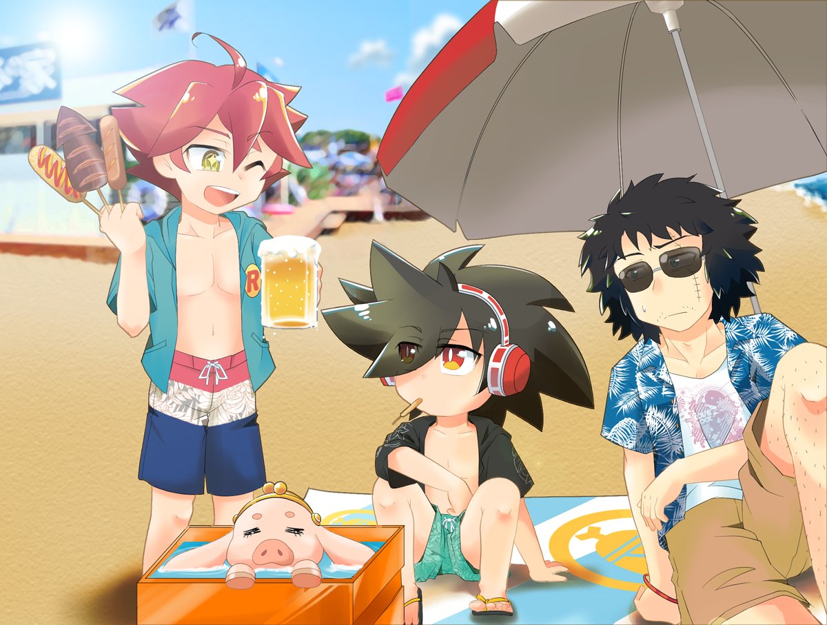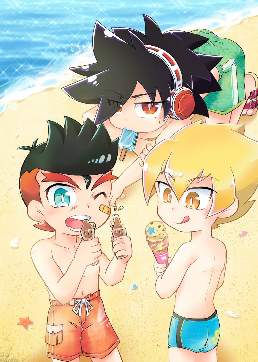 暑中お見舞い(過去絵) #ヒーローバンク #豪勝カイト #天野ナガレ #桜田セキト #ショタ