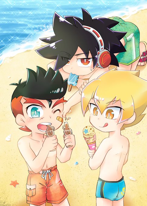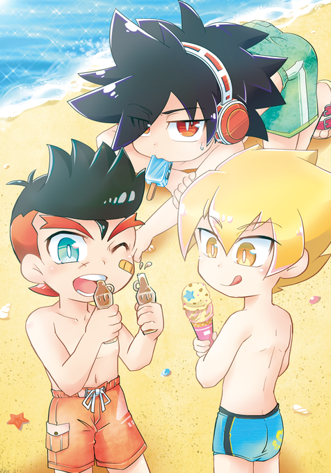 6 10 暑中お見舞い(過去絵) #ヒーローバンク #豪勝カイト #天野ナガレ #桜田セキト #ショタ 20/08/01 17:46