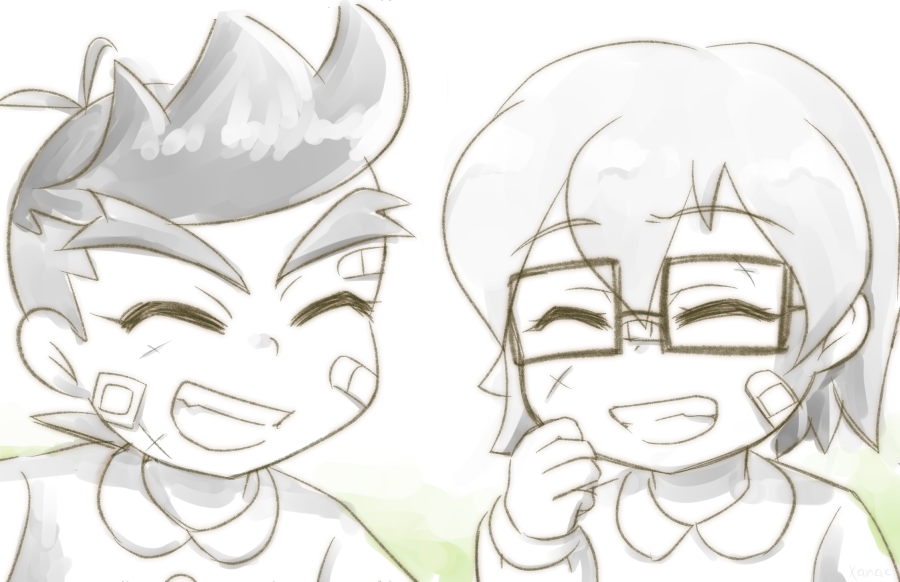 11 25 おそろいで絆創膏貼ってるふたり ※たぶん幼稚園くらい #ヒーローバンク #天野ナガレ #豪勝カイト #らくがき #fanart 21/07/27 12:05