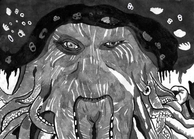 Day 25 #inktober2019 #davyjones played by the brilliant #billnighy brought to life by @ILMVFX #potc #piratesofthecaribbean #inktober #indiaink #art #artstudio #mississaugaartist #mississauga