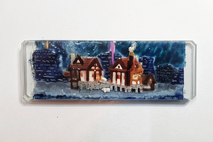 Retirement home. Technoblade and Philza's home painted on glass microscope slides. RTs are super cool #technobladefanart #philzafanart