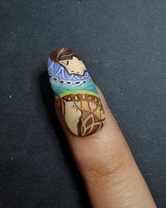 Georgenotfound nail art inspired by the painting The Girl with the Pearl Earring by Vermeer. RTS are very pog #georgenotfoundfanart #nailart