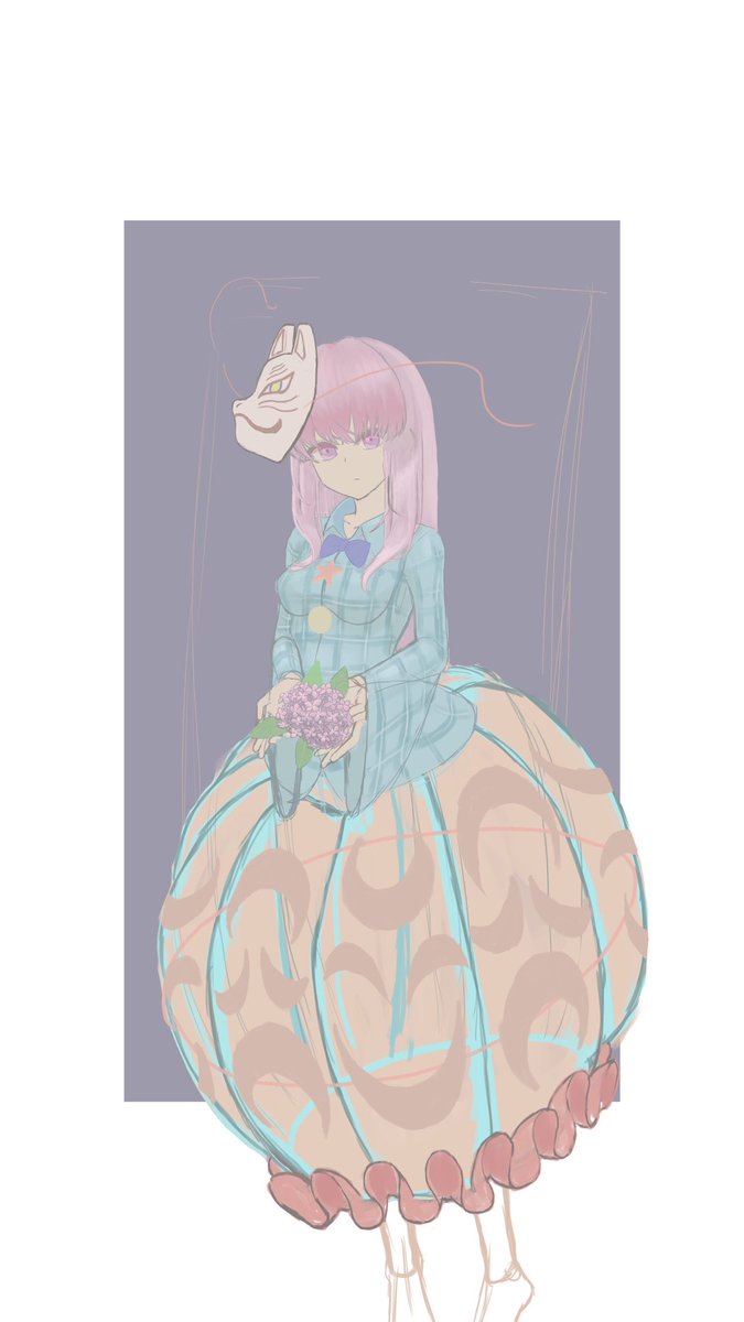 1 1 色塗りが難しい!!進捗!!! #イラスト練習中 #秦こころ #東方Project 23/04/05 04:13