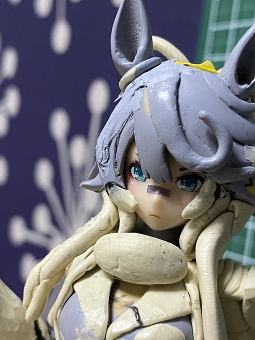 案通りに行かなかったけど、できたからよし! パテこねて1時間くらい放置してから使うのがいいよ。接着力?が少し弱くなるけど、ネチャネチャがなくなって位置付けしやすくなるよ! #ウマ娘造形部