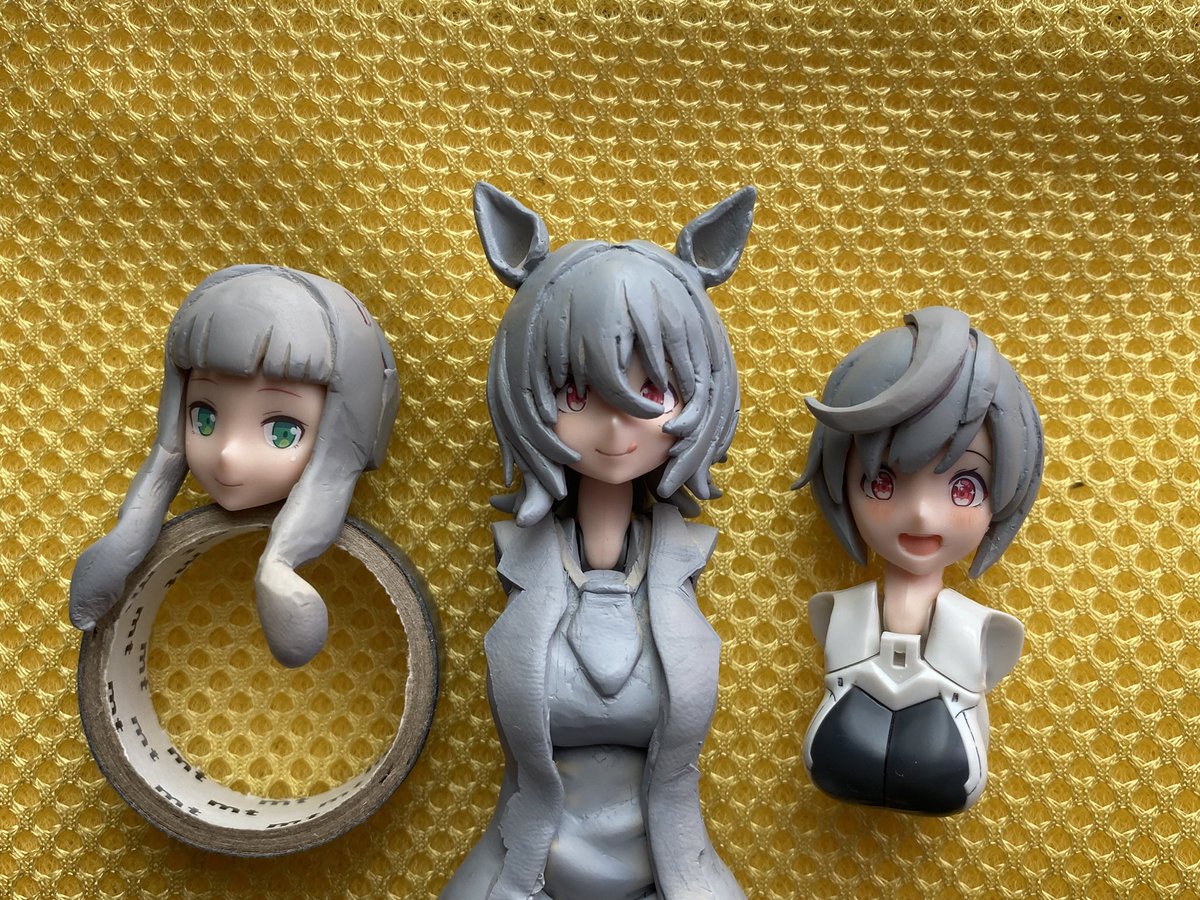 写真だと綺麗に見えるけど傷がすごい ヤスリタノシミータノシミータノシミー‼︎ あと、タキオンの軟質パテどうなるか心配なんで様子見ですかね。 #ウマ娘造形部