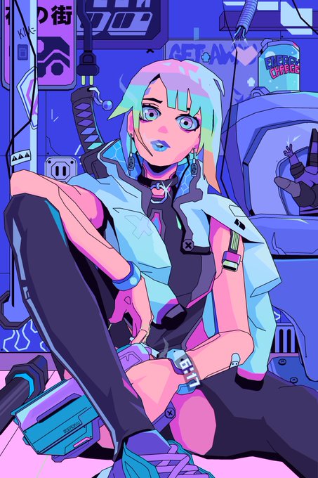 #PortfolioDay *:・゚✧ I'm Kiv! I like to do my stuffs in the cyberpunk / synthwave style. And this is my OC, Hayami! *