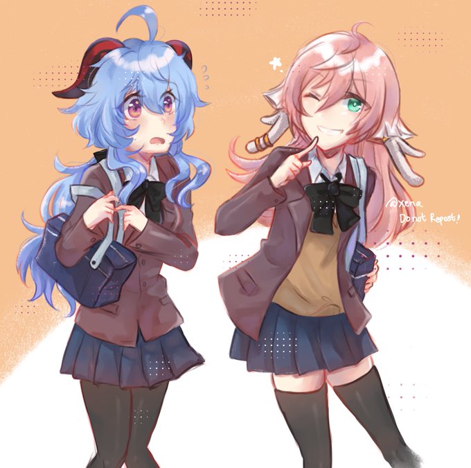 High School Beauties #artistontwittter #原神 #GenshinImapct #genshinimpactfanart #Yanfei #Ganyu #fanart