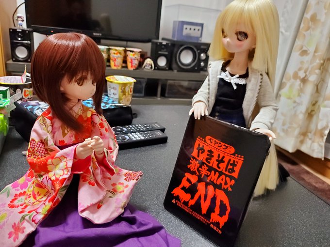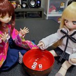 0 24 不定期ドール日記 No.94 題「おやつ大好き!」 ミニサイズの駄菓子を見つけるとついつい買ってしまうドールオーナーの性。皆様もご経験は? 刹「柚子。大きなドーナツを見つけたわ。こっちにしない?」 柚「そっちは狂太朗さんが食べるやつでは…?」 #MDDはいいぞ #うちのこかわいい 21/11/23 20:42