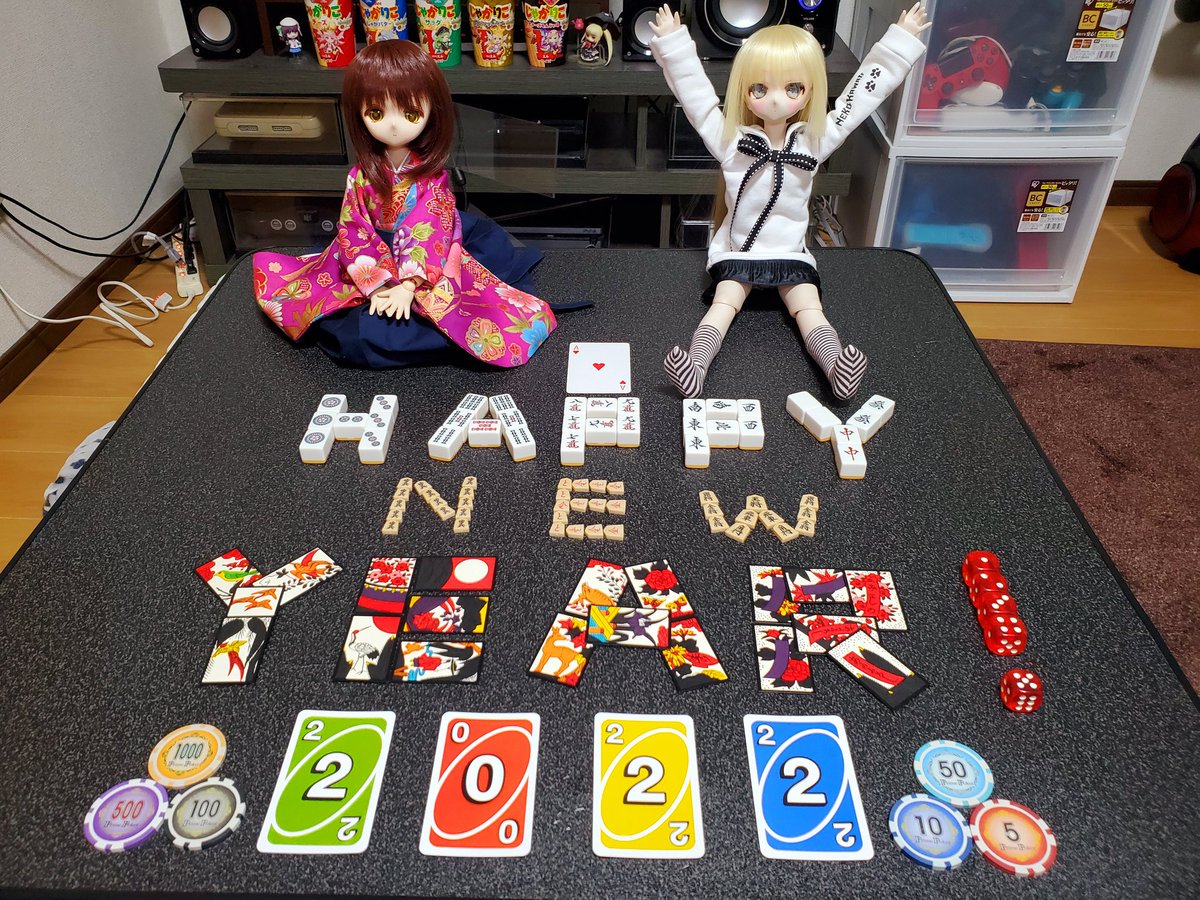 2 35 不定期ドール日記 No.121 題「今年もあと365日」 カウントダウンも無事終わり。 最後は今まで使った小道具に花札を添えて 「A HAPPY NEW YEAR!2022」で締めくくりと同時に新年開始でございます(≧◡≦) 皆様、今年も宜しくお願い致します! #MDDはいいぞ #うちのこかわいい 22/01/01 00:00
