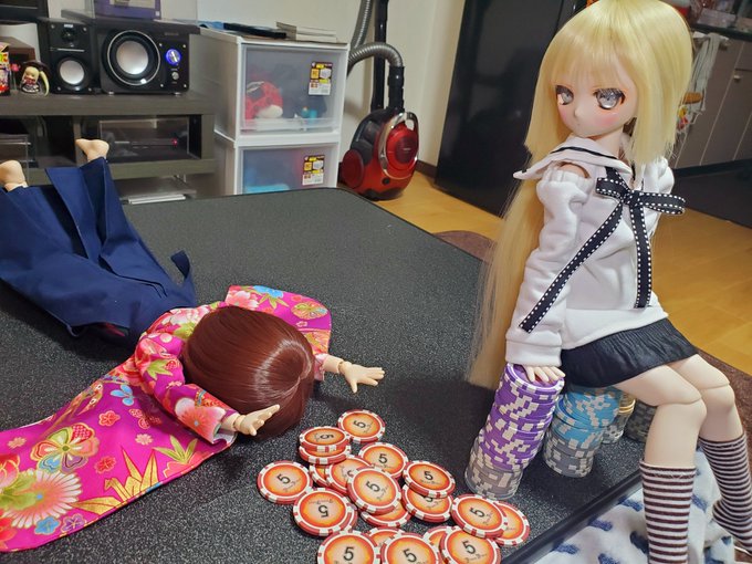 不定期ドール日記 No.103 題「この子の思考はアナーキー」 柚「そのまま!そう!あ、危ない!」 刹「あら。二人とも素手?」 柚「え?相撲は素手が普通ですよ?」 刹「力士はビール瓶とかリモコンを武器に使うって聞いたわ」 柚「どこで聞いたんですか…?」 #MDDはいいぞ #うちのこかわいい