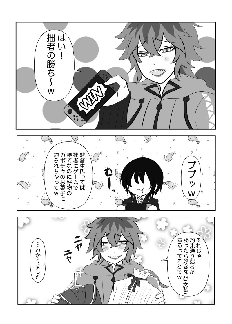 ずっと完成してなかったイデ監♂漫画がようやくできた 女装させたいイデアと絶対に女装したくないうちの監督生 若干、監督生が腹黒っぽいな #twstプラスB